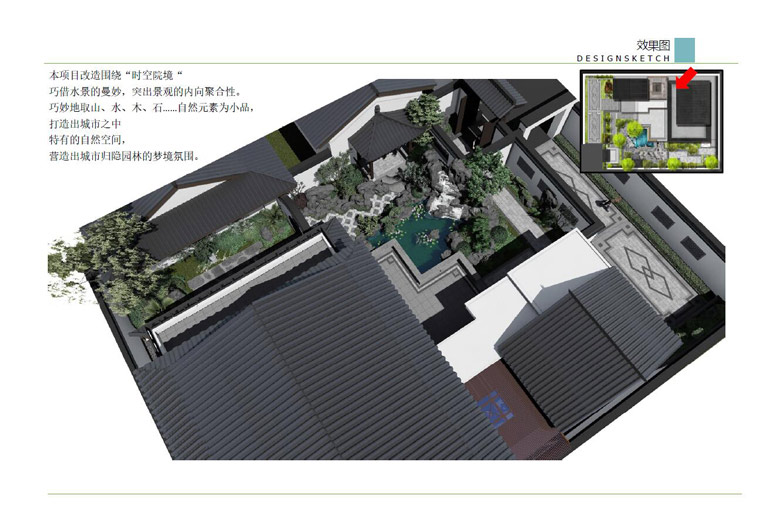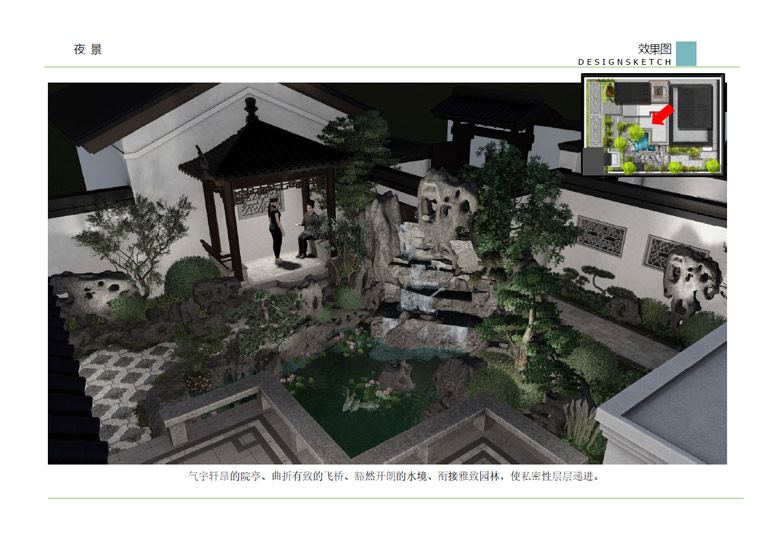師法自然,融于自然,順應(yīng)自然,表現(xiàn)自然——這是中國古代園林體現(xiàn)“天人合一”民族文化之所在,是獨立于世界之林的最大特色,也是永具藝術(shù)生命力的根本原因。中式景觀設(shè)計借鑒中國古典園林的造園手法,結(jié)合現(xiàn)代的景觀元素,共同營造豐富多變的景觀空間,達到步移景異、小中見大的景觀效果。
