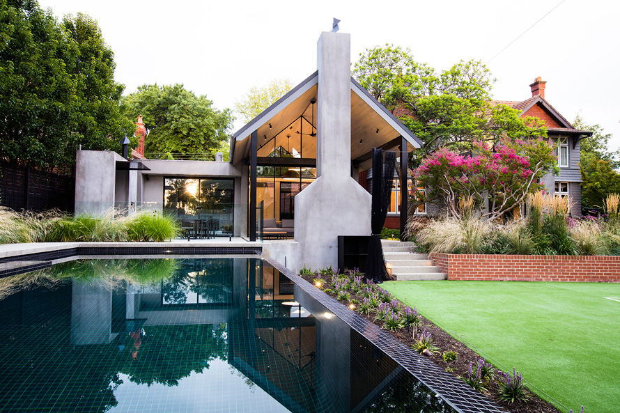 4、巧妙增強空間感:壁爐架上方的白色通透格柵就從 某種程度上增加了空間進深,視覺上擴展了花園的 面積。