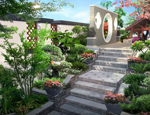 中國傳統的庭院規劃深受傳統哲學和繪畫的影響,甚至有繪畫乃造園之母的理論,最具參考性的是明清兩代的江南私家園林它是由建筑山水花木合理組合成的綜合體,疊石理水植物配置都富有詩情畫意,講究雖由人作,宛自天開的境界,其中的必備元素:假山、流水、亭臺樓榭、翠竹 。