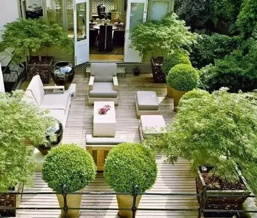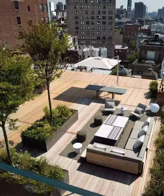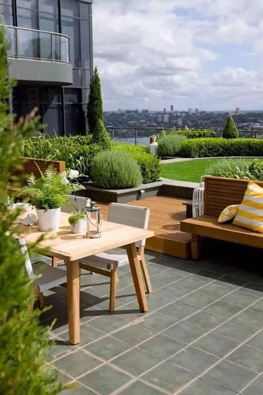 隨著人們生活條件的日益提高,多層階梯式公寓和別墅的出現,使屋頂花園逐漸走入了人們的家庭生活。該類型的屋頂花園建于自家天臺或露臺上,是家人的朋友享用的私人空間,通常面積與荷載較小、布置精美、生活化,即可作為休閑場所,也可作為晾衣養花的功能性場所。